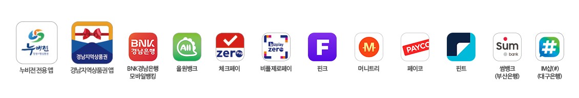 모바일 누비전은 전용앱, 경남지역상품권, 올원뱅크 등 여러 애플리케이션을 이용이 가능하고