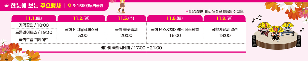 마산 가고파 국화축제에서 빼놓을 수 없는 행사 일정입니다.
